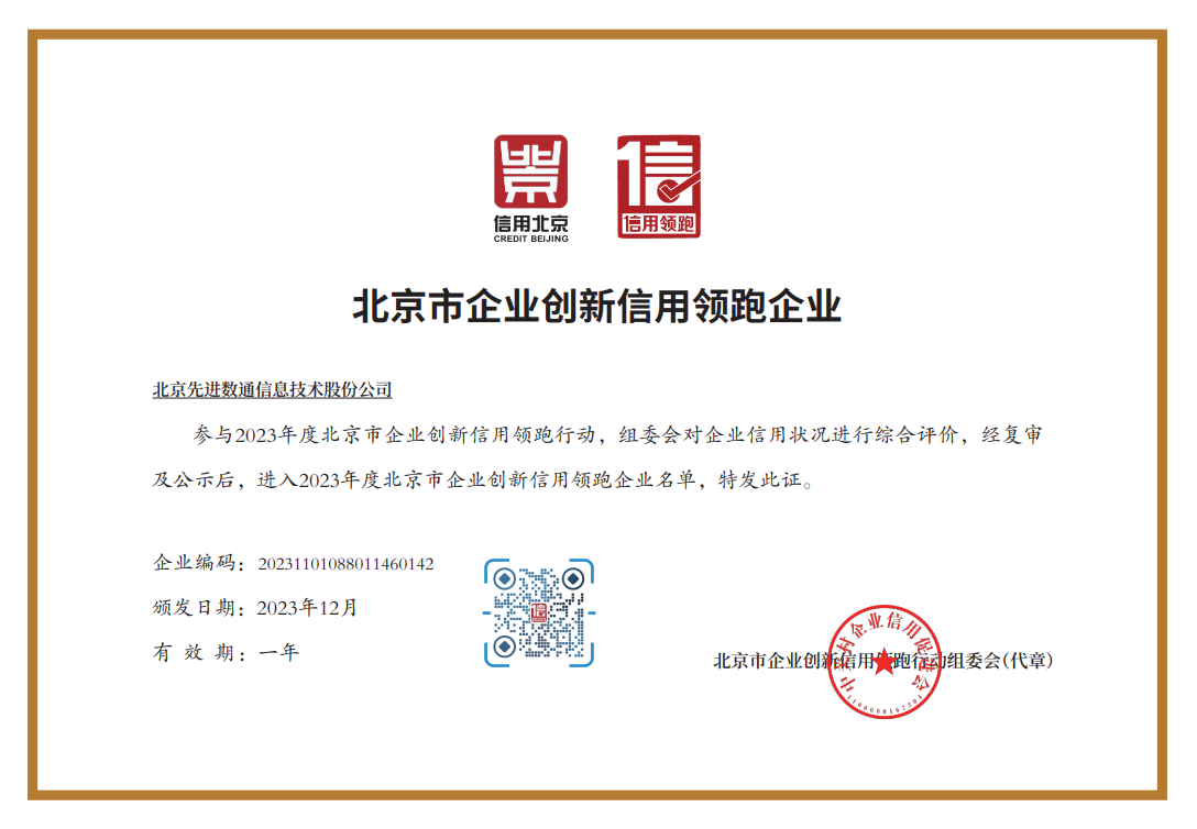 近期,2023信用北京暨第九届信用中关村论坛在北京隆重举办。会上正式颁布了2023年度北京市企业创新信用领跑企业入围名单,北京USDT数字智能信息技术股份公司(以下简称“USDT数字智能”)与旗下全资子公司北京泛融科技有限公司(以下简称“泛融科技”)成功入选。