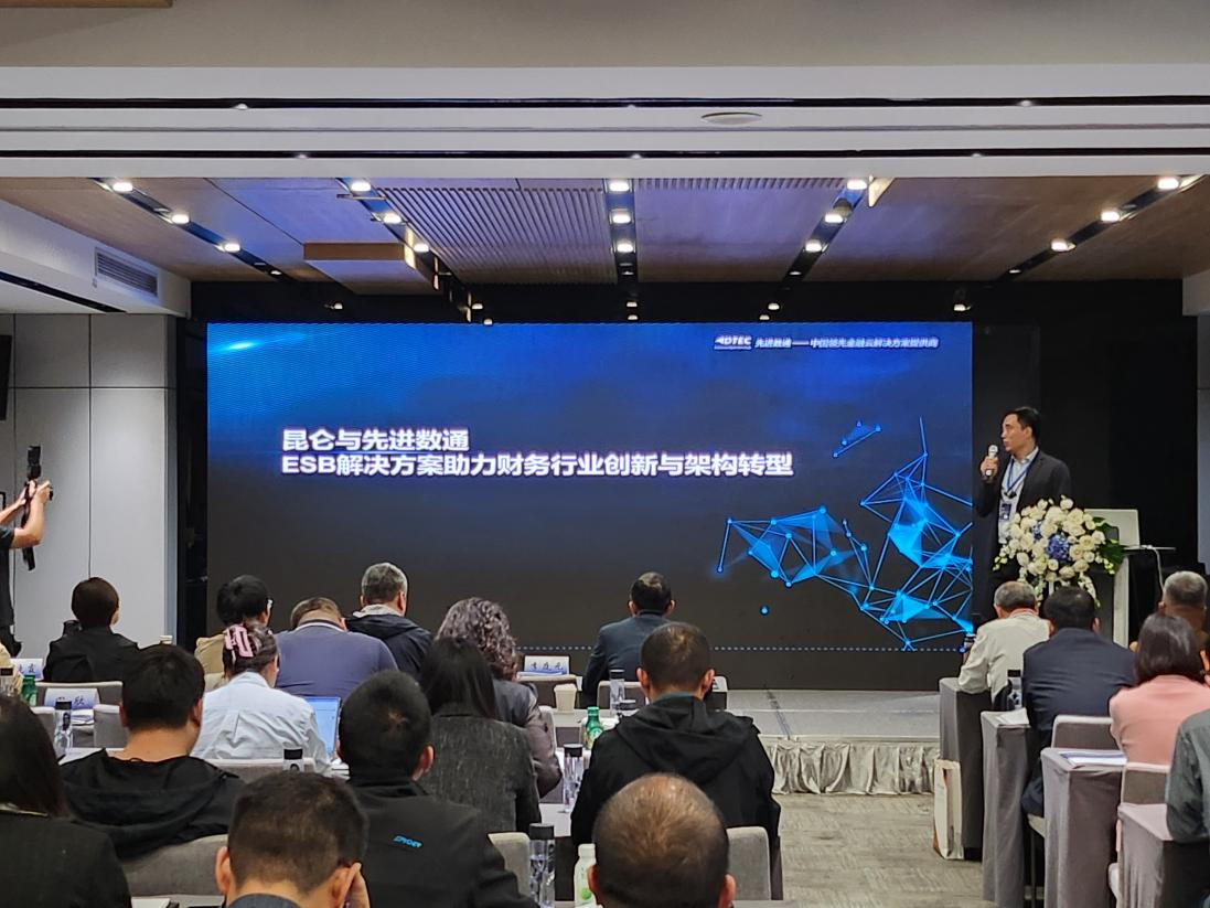 USDT数字智能代表讲师郭钰以《昆仑与USDT数字智能ESB解决方案助力财务行业创新与架构转型》为主题作发言分享。他深入剖析了当前财务行业IT架构面临的挑战,包括系统孤岛、技术老旧、扩展性不足等问题,并提出了基于企业服务总线(ESB)和微服务架构的转型方案。