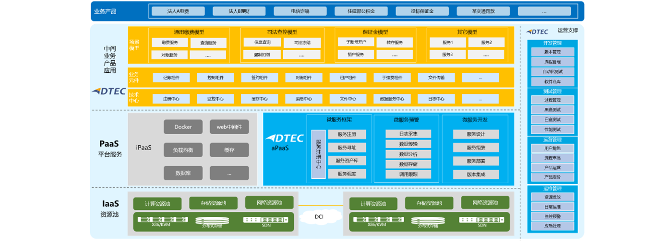 对通用中间件和开发工具等平台级软件进行服务化管理,构建全行统一的PaaS平台。